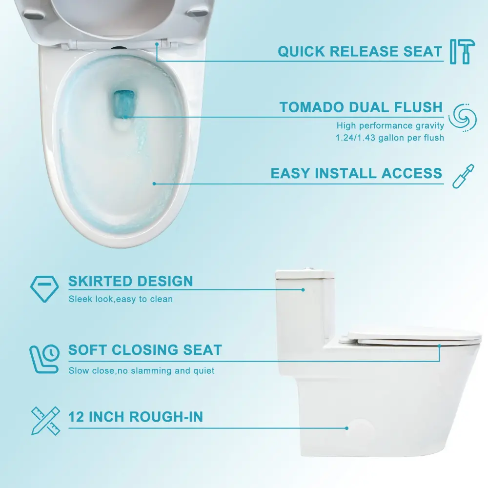 - Easy Cleaning Surface: Totally glazed, non-porous ceramic with skirted design prevents dirt buildup and simplifies maintenance.
