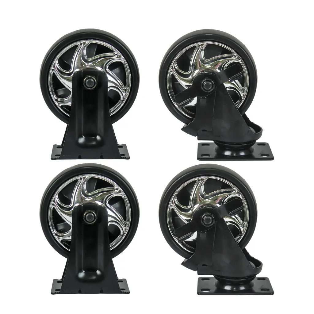 4 Drawers Multifunctional Tool Cart With Wheels And Wooden TOP-BLACK Description: Holding Panel both side have holding panel can handle hooks Five Inch Heavy Duty Wheels Two universal wheels with break, two fixed wheels Adjustable Shelf This shelfs can been folded Ball Bearing Slide 45 Kg loading capacity ball be