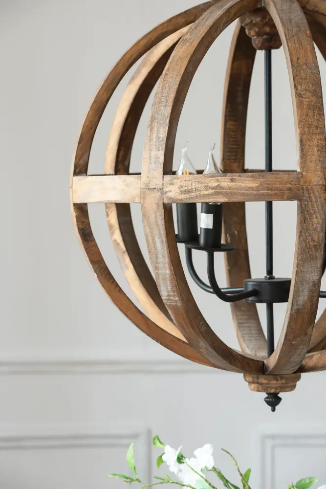 - Design: Wood chandelier with contrasting iron fixture, offering a versatile style that matches various decors.