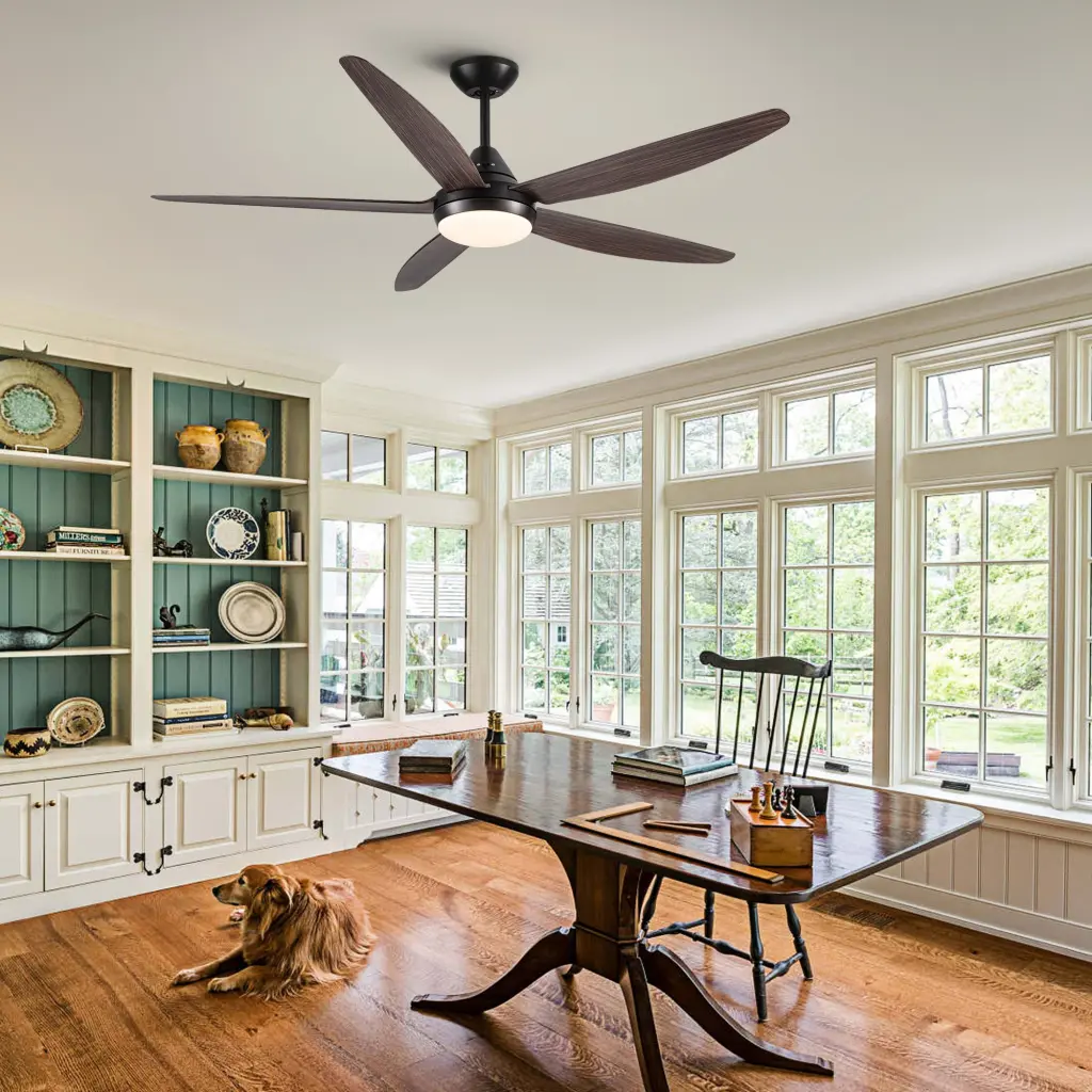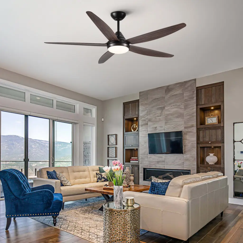 Description:YUHAO Ceiling Fan with lightA ceiling fan full of pastoral style. Yuhao 56-in. Led ceiling fan is suitable for any room in your home. Designed with 5 high quality Abs blades. This energy-efficient, modern ceiling fan utilizes an 36-watt Led light source meant to last up to 50000 hours. The integrated Led light kit offers versatile lighting choices. Choose from 3000k, 4000k or 5000k light output choices. The Dc motor has 6 speeds to alter the airflow to suit the season. This indoor fan comes with a remote and it included reversible direction, dimming and timing function. Dc motor fans are 70% more energy efficient than Ac motor fans (when comparing efficiency (cfm/w) of Dc vs Ac motors in published Ftc Energy Guides for ceiling fans).Location UseBarn, Bedroom, Dining Room, Garage, Kids Room, Kitchen, Living Room, Office, Warehoutilize