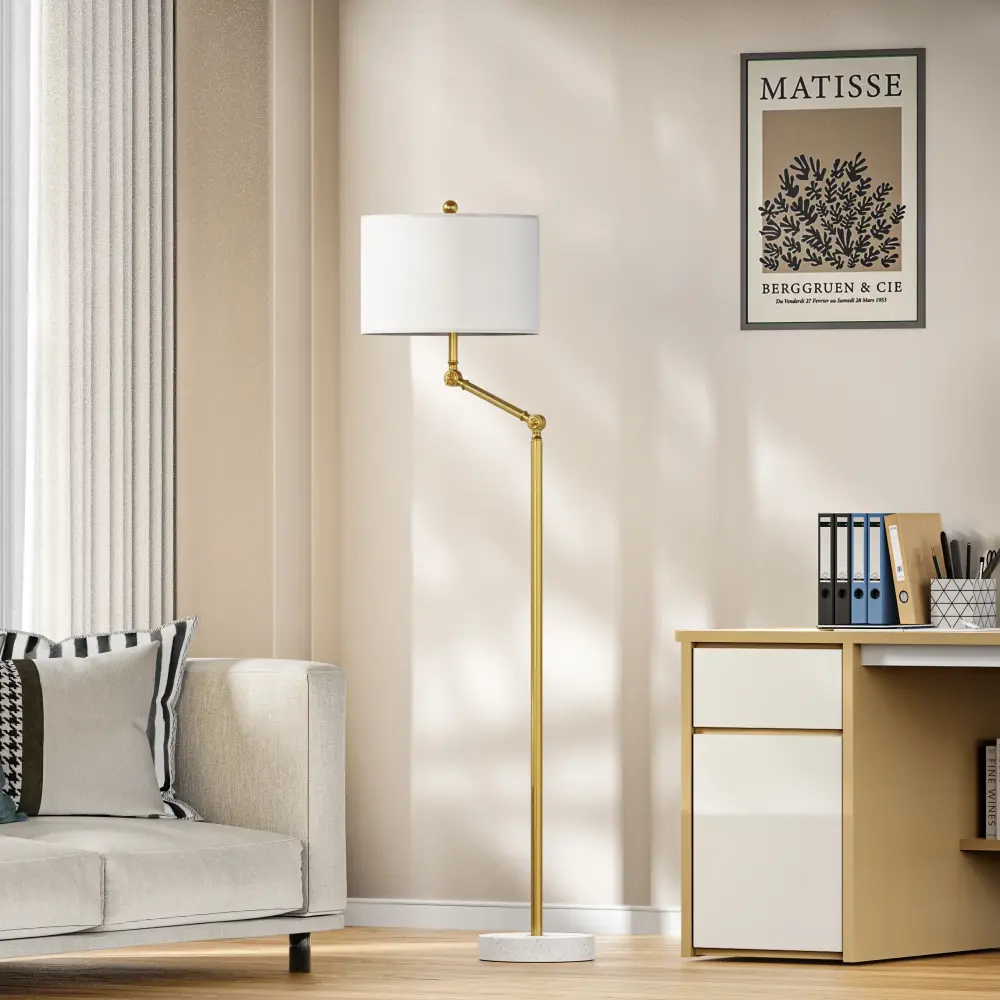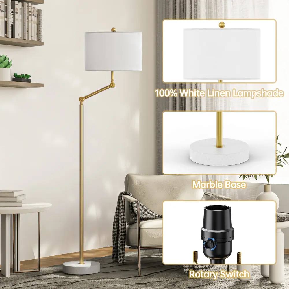 Experience timeless elegance with our Traditional Floor Lamp. Featuring adjustable lighting to suit your needs and a time-saving rotary switch for effortless control, it enhances any space from living rooms to bedrooms and studies. The lamp stands sturdy on its marble base, adding both durability and sophistication to your decor. Developed for dry indoor environments, it requires no assembly, ensuring a hassle-free setup. Illuminate your home with style and functionality, creating a cozy atmosphere wherever it stands.