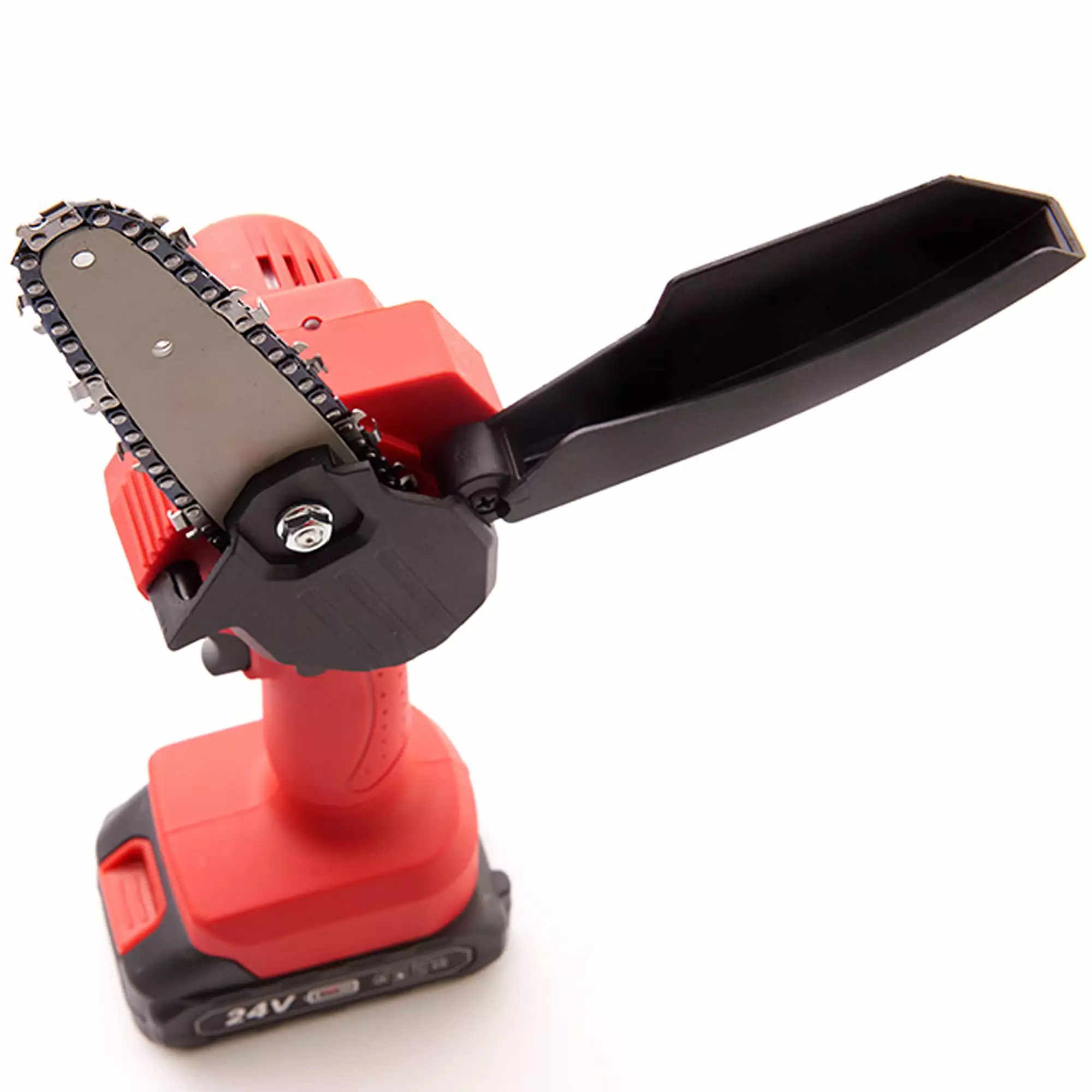 The Powerful 24v lithium battery operated chainsaw uses a high quality guide chain that ensures smooth. seamless cutting. Ideal for Tree pruning. Woodcutting. and gardening. The chainsaw takes an impressive 10 seconds to cut a log with a diameter of about 15cm. With a total weight of 700 grams. the mini chainsaw can easily be controlled for long hours of work. The chainsaw can operate for up to an impressive 3 hours of continuous work on one full charge! Cutting depth in the pipe : 80mm Saw blade size/diameter: 110mm Maximum sawing thickness : 80mm Net weight: 700g Packaging weight: about 1300g Voltage:24v Battery power:550w Guide plate length: about 260 mm Chain speed per min: 3000rpm What’s in the box : 1X Handheld Chainsaw 1X Battery 1X Charger 1X Screwdriver 1X Wrench 1X User Manual 1X Hard Case