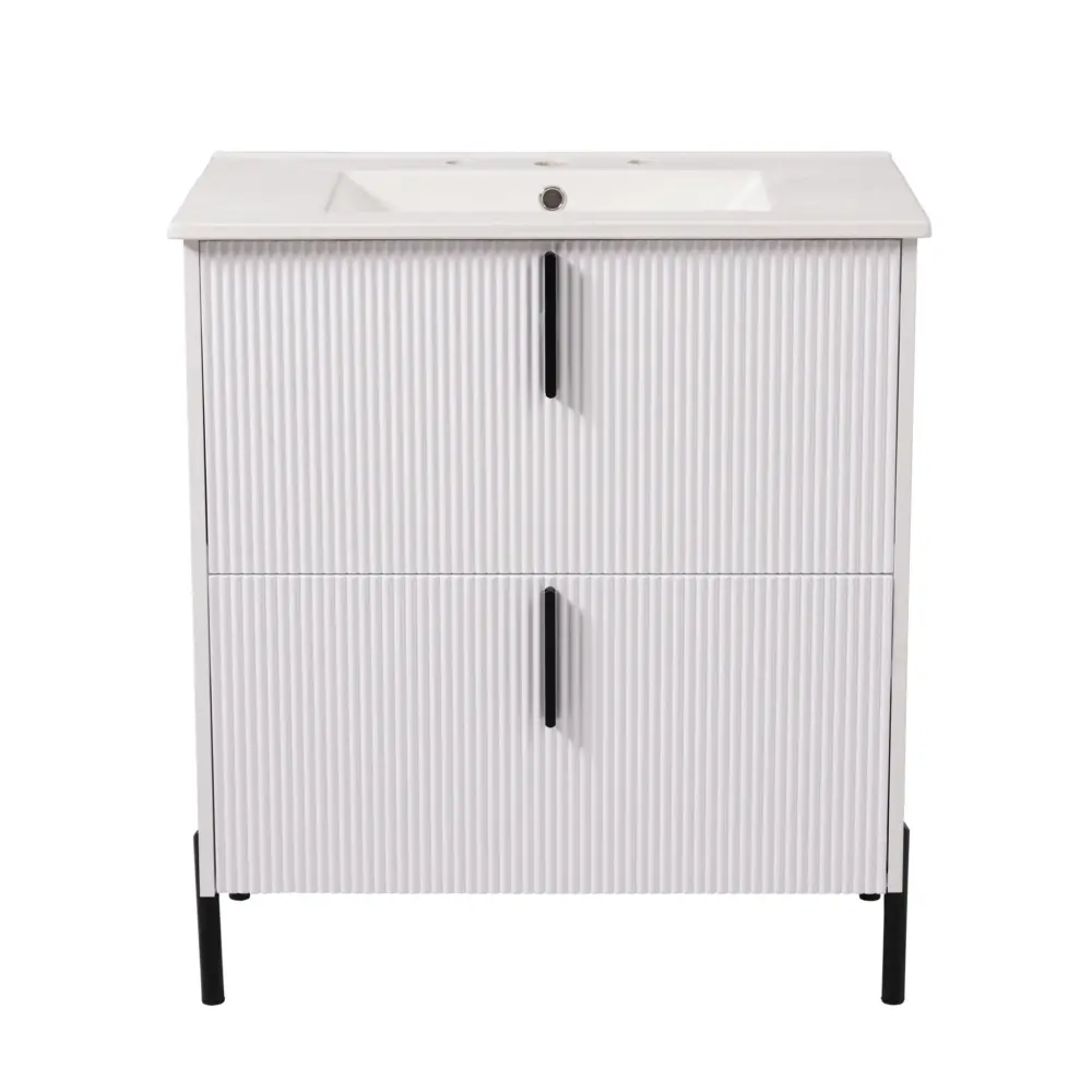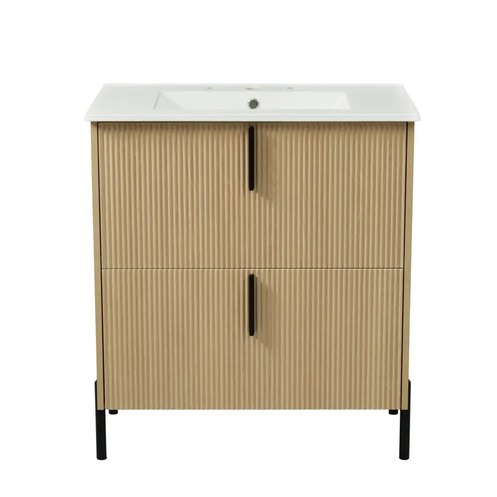 Bathroom Vanity With Ceramic Sink, Fluted Design ● Hooks for loofahs or brushes ● Candle holders built-in ▶ Create a Spa-Like Sanctuary