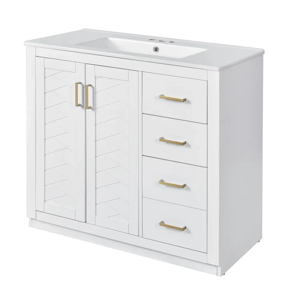 - Ample Storage: Three spacious drawers and two concealed doors maximize organization of toiletries and supplies