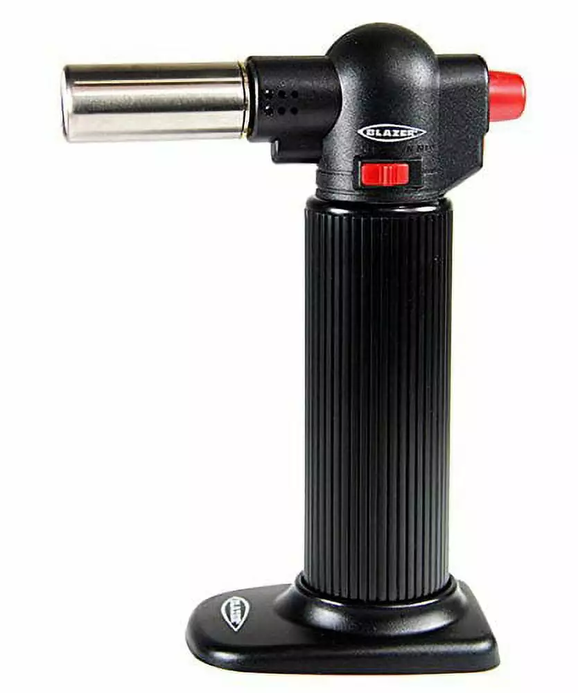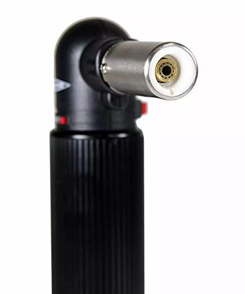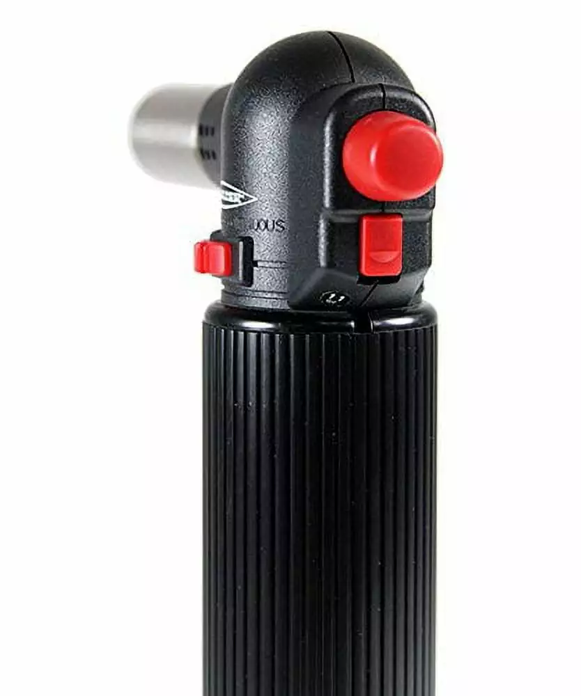 Measuring 7 inches (17.78 cm) tall. this torch has a stand-alone base and a locking switch to allow for hands-free operation. With a powerful turbo flame that can heat up to 2500 . this refillable butane torch can hold a constant flame for up to 60 minutes! The Big Buddy Torch Lighter also features piezo self-ignition. precision flame control. and a 30mL butane gas capacity.