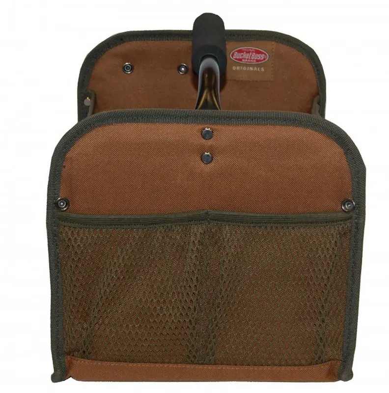 Bucket Boss Gatemouth Hard Tote was made of not just holding tools. but for use with crafts or cleaning supplies. Constructed this with the same poly ripstop/600D poly material as our other tool bags because we wanted to make this tote durable. Built with several pockets style (4 open. 3 mesh and 1 zipper) and 16 elastic loops. there should not be any problems with holding small parts or tools. There is also a metal tape clip included and a foam rubber grip on the steel handle for comfort when you carry it.