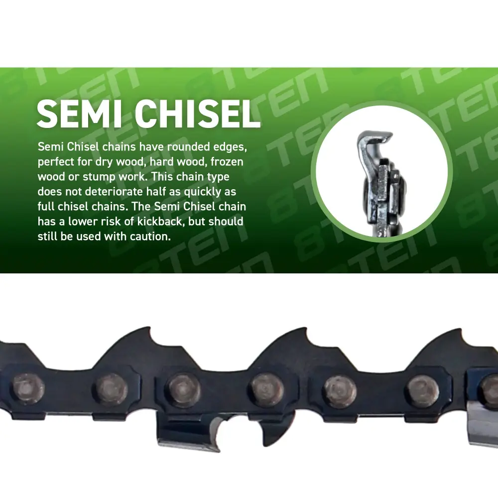 - Chainsaw Specs – Cutting Length 16 Inch; Gauge .063 Inches; Pitch .325 Inches; Drive Link Count 62; Chain Type Semi Chisel; Guide Bar Type Laminated