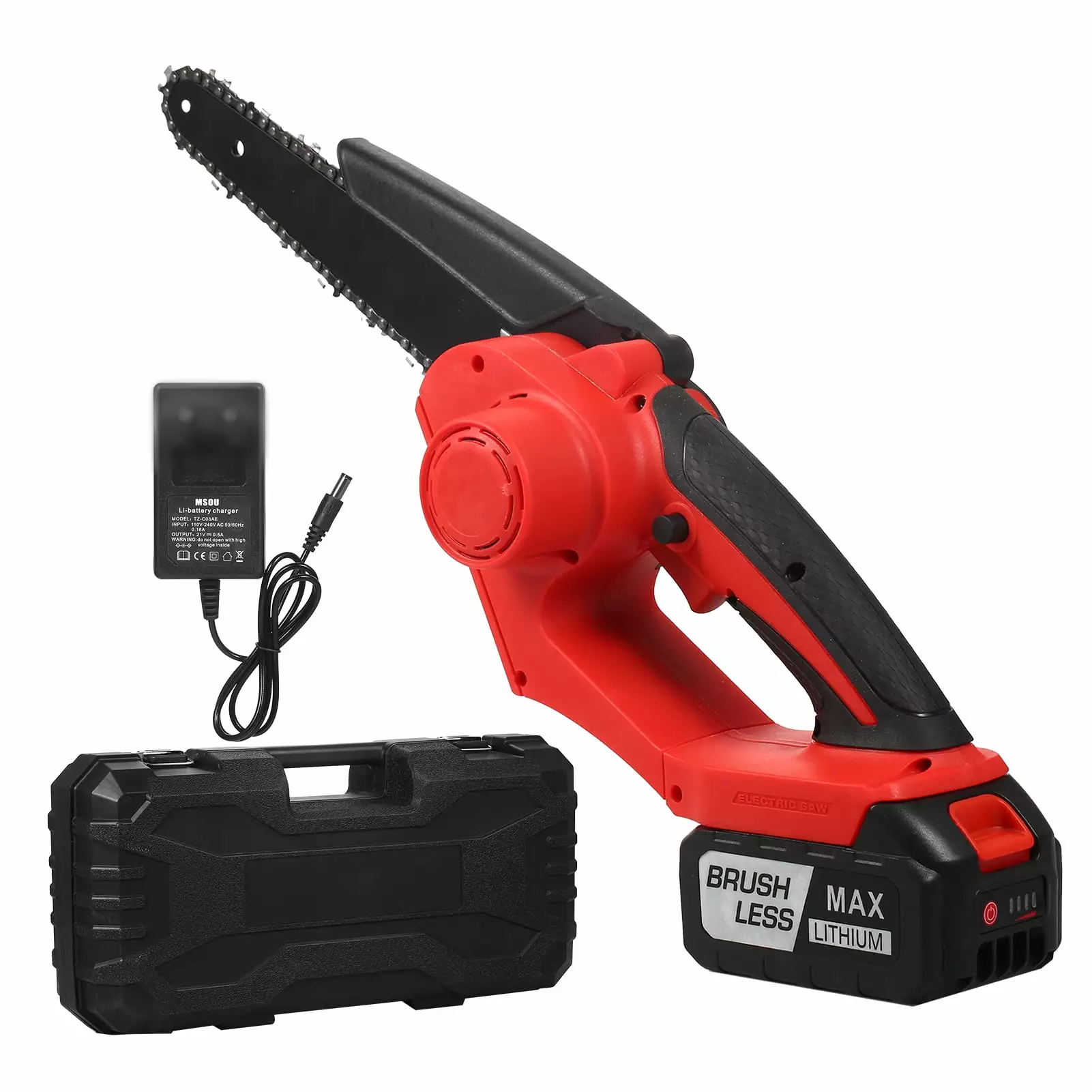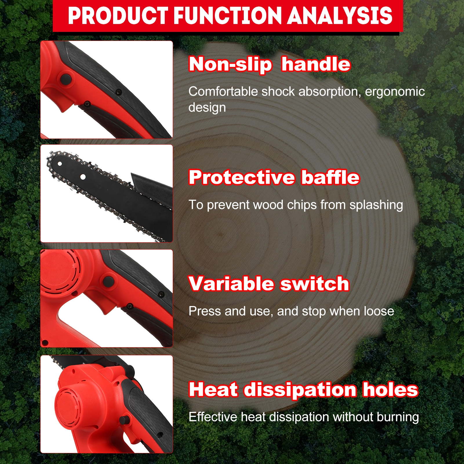 - Safe & DurableOur mini cordless chainsaw is designed with safety in mind. featuring a security switch and a 90 splash guard baffle. It’s built to last and has undergone rigorous quality testing six times before being sent to you.