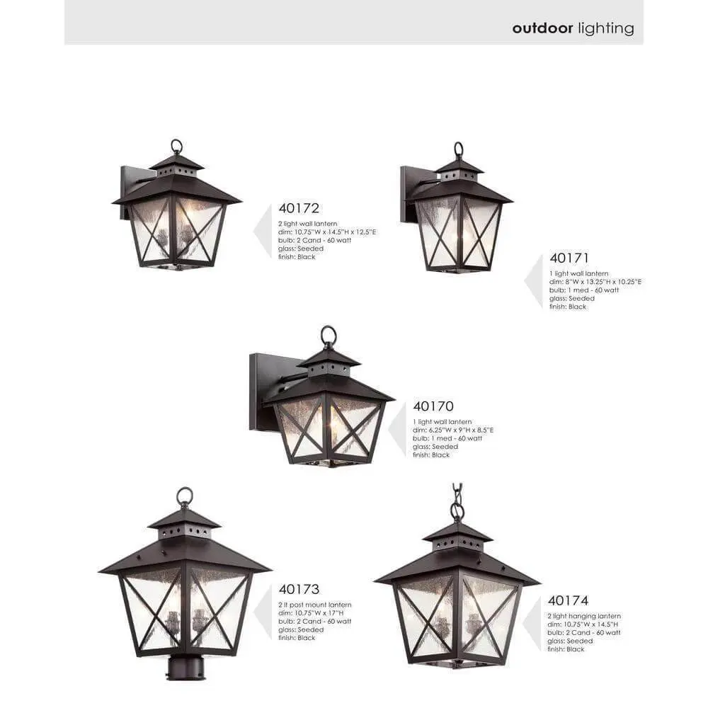 - Complete collection sold separately; wall lantern, post lantern, hanging lantern