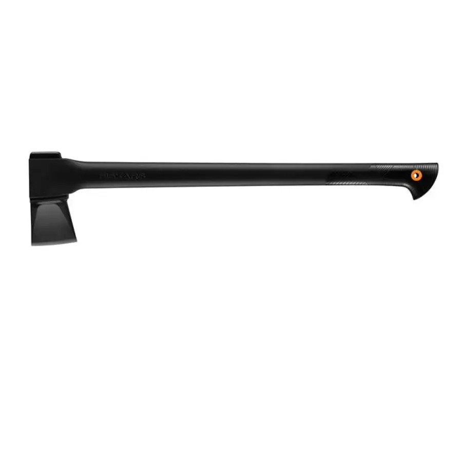Split larger logs in one strike with an axe that maximizes your efficiency and includes a heavy-duty sheath. Fiskars 28 Splitting Axe is a great choice for anyone who needs to split medium- to large-sized logs quickly. Splitting Axe combines perfected weight distribution. advanced blade geometry. an ultra-sharp edge and virtually unbreakable design to maximize your performance. This combination of features allows the blade to disperse wood more effectively. offering more one-strike splits with each swing. Since you can split wood more easily with our Splitting Axe. each job requires less time. less effort and less hand strain.