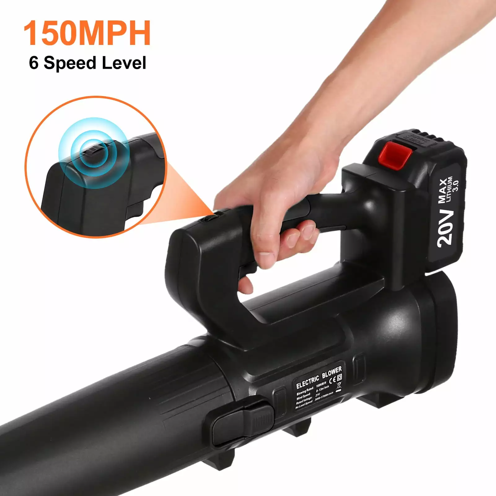- 6-Speed The air blower for leaves has 6 speeds. This will meet the needs of different scenarios. It can even be used for hours at low speeds.