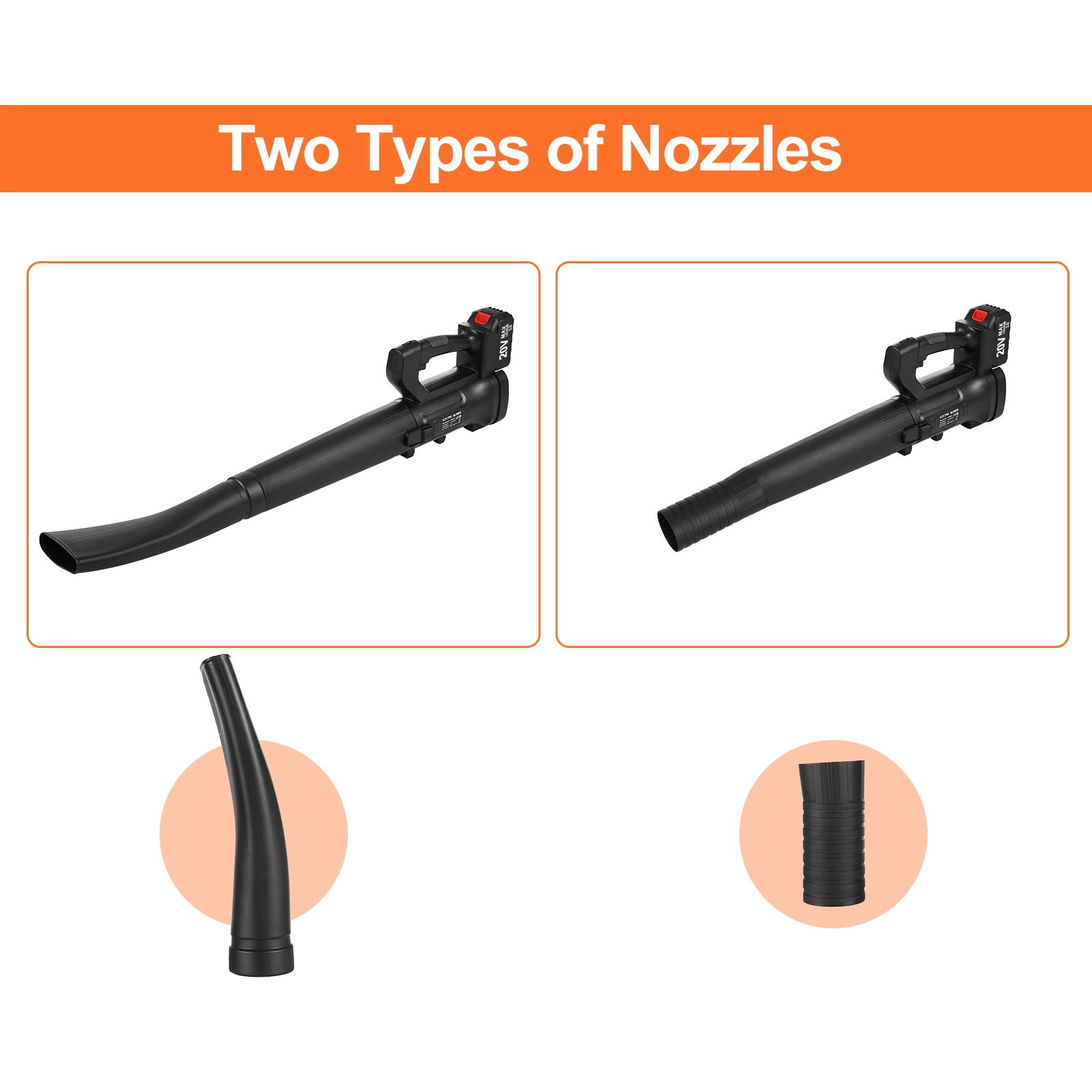 - Efficient use of a powerful motor High-power pure copper motor speed can reach 20.000RPM. Battery leaf blower is up to 332-CFM and 150-MPH . The cordless blower also has two tubes that can be freely combined to meet the needs of multiple scenarios. The tuyere features a slightly curved design that converts wind power into a wider flat thrust. So the electric blowers for lawn care are easier.