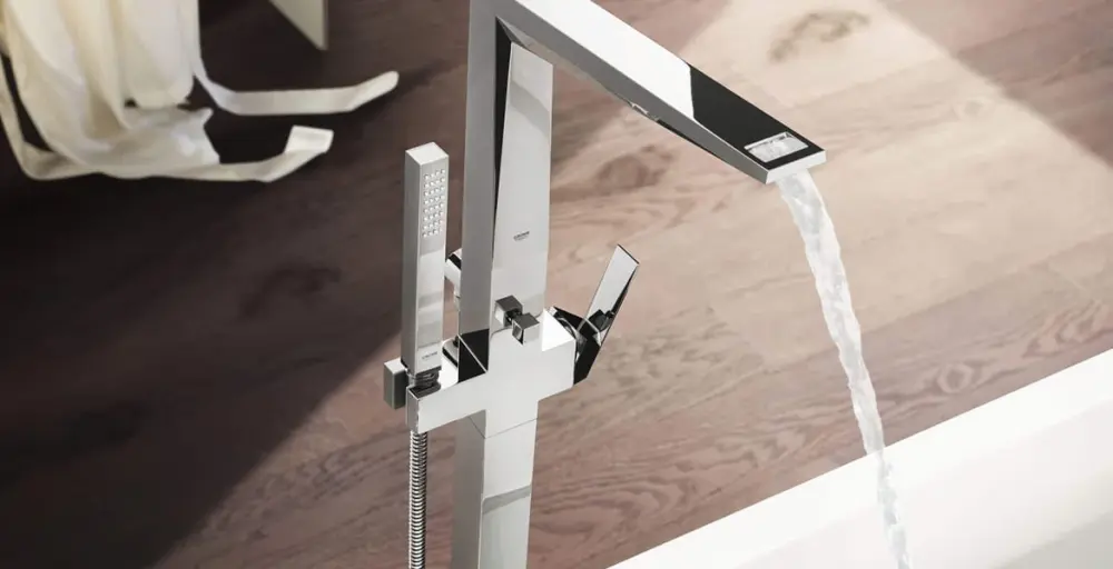 – Rediscover the beauty of water with Allure Brilliant. Designed around geometric shapes and clean lines, this sophisticated collection brings architectural precision to your bathroom. Crafted with the utmost care, the gem-like body culminates in a spout with striking details, acce