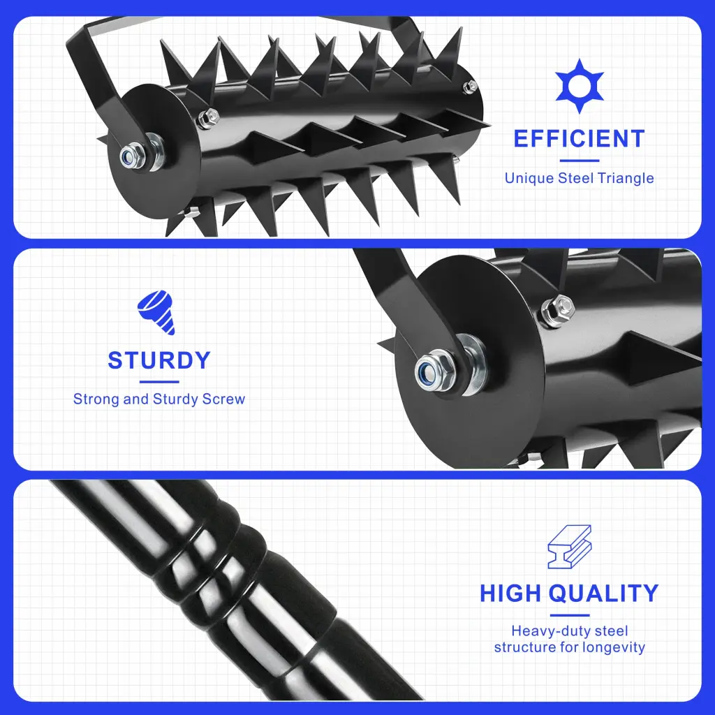 Multi-functional Applications: Suitable for various lawn types, this grass aerator enhances soil aeration, promotes grass health, and backs a lush, green yard.