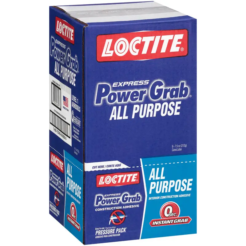 Loctite Power Grab Express. 7.5OZ. All Purpose Interior Construction Adhesive. Premium Quality. High Strength. Gap Filling Adhesive With Zero Second Instant Grab. Extremely High Tack Adhesive Reduces The Need For Nails & Screws In Many DIY Projects &