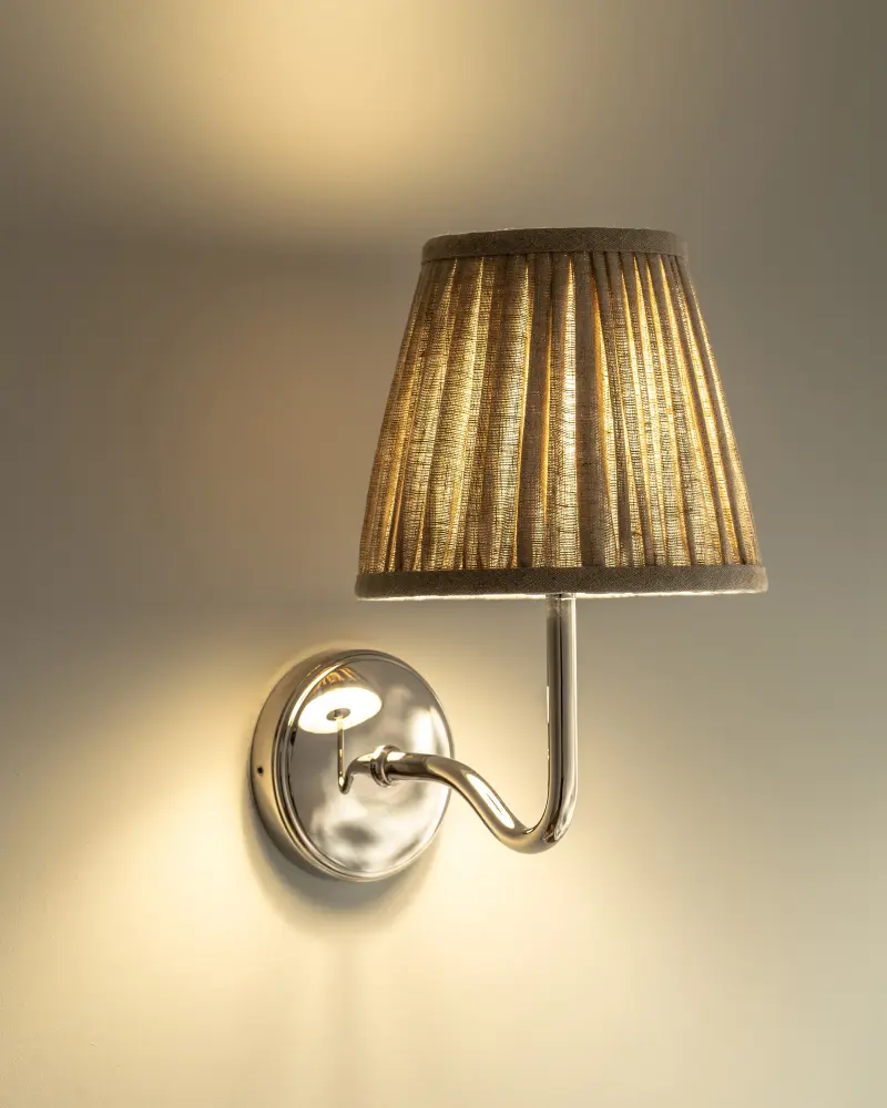 Malvern Medium Wall Light Pleated Natural Beige – Polished Nickel ● Frosted Acrylic Cover – Soft Light Diffusion ● Brushed Nickel Finish – Modern Look ▶ Transform Your Room’s Ambiance