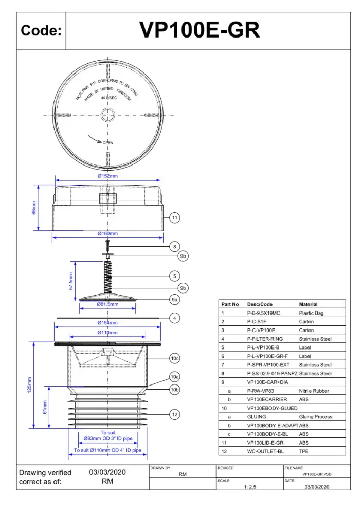 The VP100E-GR Ventapipe 100 has a dual-fit outlet that is connects to with both 4″ and 110mm pipes, making it a versatile choice for a range of plumbing systems. The outlet features a synthetic tpr finger seal that provides a tight and secure fit to the pipe, helping to prevent leaks and other issues.