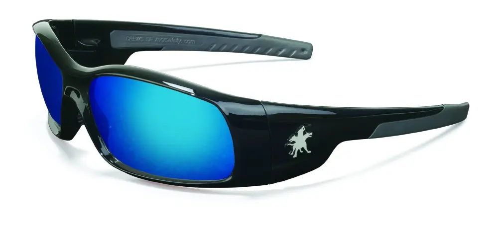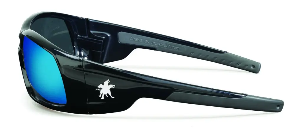 MCR Safety Crews SR118B Swagger Brash Look Polycarbonate Dual Lens Glasses with Polished Black Frame and Blue Diamond Mirror Lens, 6 inches x 2 inches