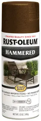 Stops Rust. 12 OZ. Brown. Hammered Spray Paint. Rust Preventative. Fast Dry. Real Hammered Finish That Hides Flaws & Imperfections In Scratched. Rusted & Pitted Metal With Minimal Surface Preparation. Designed To Be Applied Right Over Rust. No Primer