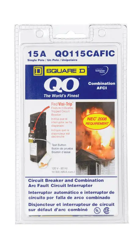 The Square D by Schneider Electric QO 15 amp Single-Pole Combination Arc-Fault Circuit Interrupting (CAFCI) Circuit Breaker is for use to help protect your wires from arcing faults and is intended for overload and short-circuits protection of your electrical system. Now standard in all Square D brand CAFCI circuit breakers. Time-Saver Diagnostics provide advanced trip indication technology. helping identify the type of fault that has occurred faster. Time-Saver Diagnostics helps take away the guess work and provides diagnostic assistance by identifying the type of fault that last occurred. It saves money by reducing troubleshooting time. simple to use. accurate and reliable. On top of that. all QO circuit breakers are equipped with the exclusive Visit-Trip indicator. When a QO Visit-Trip circuit breaker trips. the handle snaps to a midpoint position between OFF/ON and a highly visible. red indicator easily identifies the tripped breaker. This enables you to easily distinguish which breaker has tripped in a load center that may contain up to 42 different circuit breakers. QO circuit breakers have features no other manufacturer can offer. They come in many different sizes and can meet the needs of virtually every function in your home or business. These types of quality. industry exclusive products keep the Square D brand ahead of the competition and are builders’ and electrical contractors’ first choice in electrical protection.