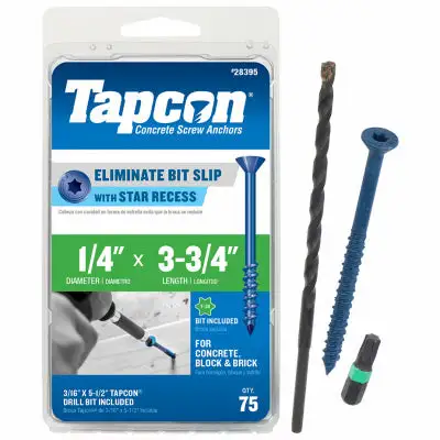 Tapcon. 75 Pack. 1/4 x 3-3/4 Phillips Flat Head Concrete Anchors.