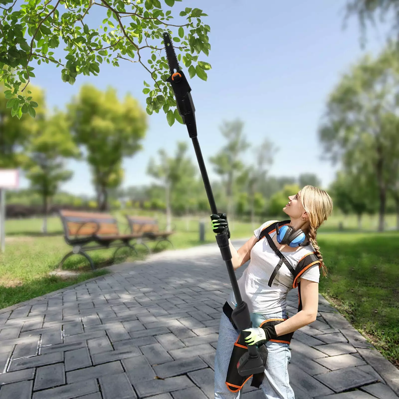 The pole saw (the overall length is 4.1ft) makes tough jobs safer and it doesn’t need to rely on unstable ladders to handle overhead work.